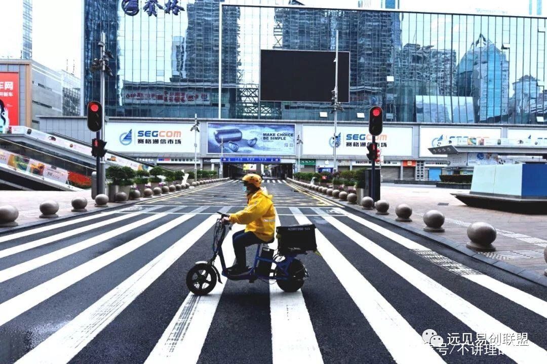 2020年的今天,因為這次病毒大家又閉門不出,實體店空蕩蕩,但大街上依然有快遞員、外賣員在奔波。